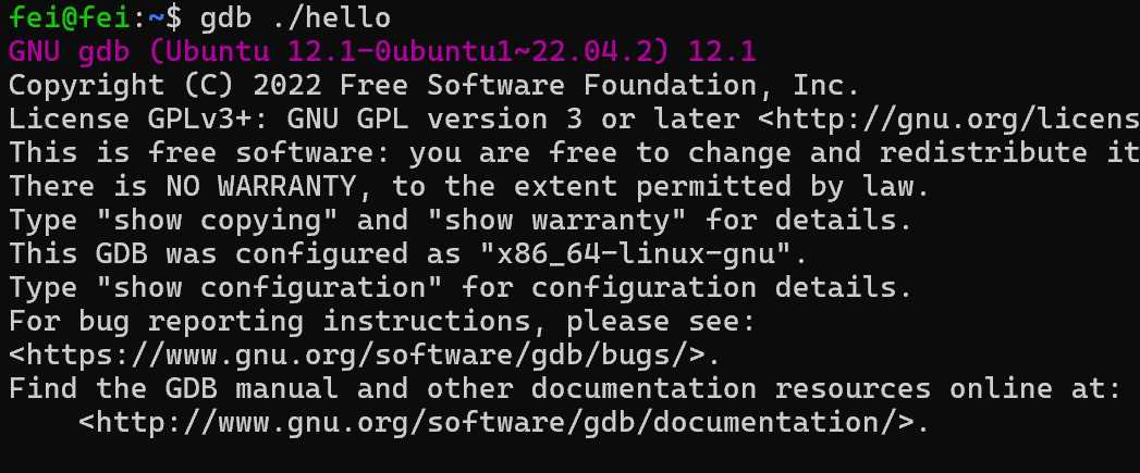 gdb ./hello
