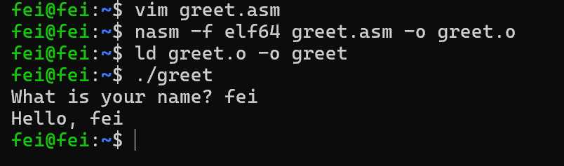 nasm -f elf64 greet.asm -o greet.o