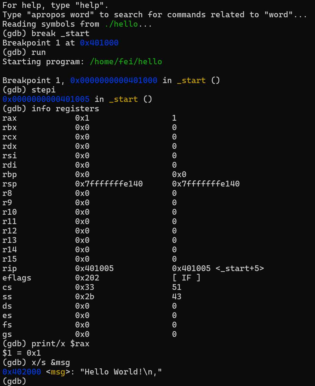 (gdb) break _start # 在 _start 設定中斷點